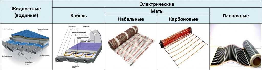 | Принцип сравнения | ИК пол | Мат нагревательный | Кабельный пол |