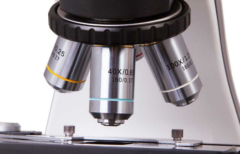 Современные школьные микроскопы – это серьезные оптические приборы с надежной конструкцией и простым управлением. Увеличение может составлять от 20 до 2500 крат. Стандартный биологический учебный микроскоп обычно комплектуется 3-мя объективами на крутящейся револьверной головке (4х, 10х и 40х). Более сложные модели имеют четвертый объектив – 100х с масляной иммерсией. На увеличениях от 640 крат можно детально рассмотреть мелкие объекты, чего вполне достаточно для проведения серьёзных наблюдений. Кроме того, со многими моделями в комплекте идет линза Барлоу, увеличивающая масштаб изображения в 2 раза, и диск со светофильтрами для изучения неокрашенных предметов.