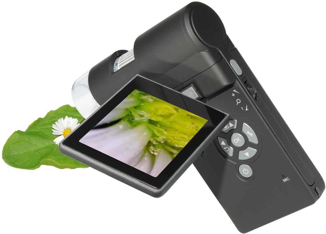 Сочетание мощного микроскопа с портативной камерой и увеличением до 500х никого не оставит равнодушным. С его помощью можно подробно рассмотреть мельчайшие детали и сохранить полученные результаты для дальнейшего рассмотрения. Прибор может быть независимым от компьютера или других устройств за счет встроенного дисплея с диагональю в 3 дюйма и литий-ионным аккумулятором, гарантирующим четырехчасовую работу без подзарядок.