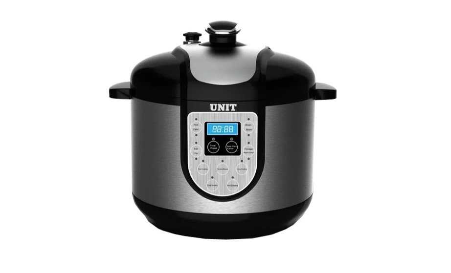 Мультиварка-скороварка от ТМ UNIT имеет 10 автоматизированных программ. Прибор оборудован чашей вместительностью 6 л. Корпус металлический. Поклонники здоровой пищи оценят контейнер для готовки еды на пару. Дизайн мультиварки-скороварки классический. Клапан для выпуска пара расположен на крышке. На корпусе имеются 2 ручки из пластика для переноски. Экран и управляющие кнопки находятся сбоку.