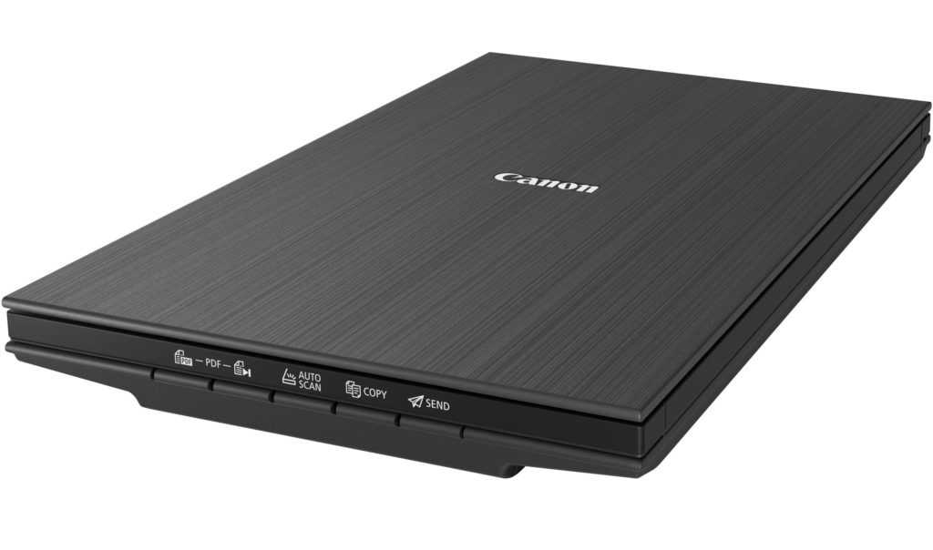 Начнем обзор с планшетного сканера А4 под брендом Canon. Вес и габариты являются основными достоинствами устройства. Дизайн хоть и выглядит на первый взгляд не броско, тем не менее, он может украсить собой любой офис. Мобильность обеспечивается не только использованием пластика в конструкции, но и отсутствием блока питания, вместо него все подключение происходит через USB-коннектор. Предварительный прогрев отсутствует, со старта можно начинать рабочий процесс и выйти на пиковую скорость в 7-8 секунд на стандартный лист А4.