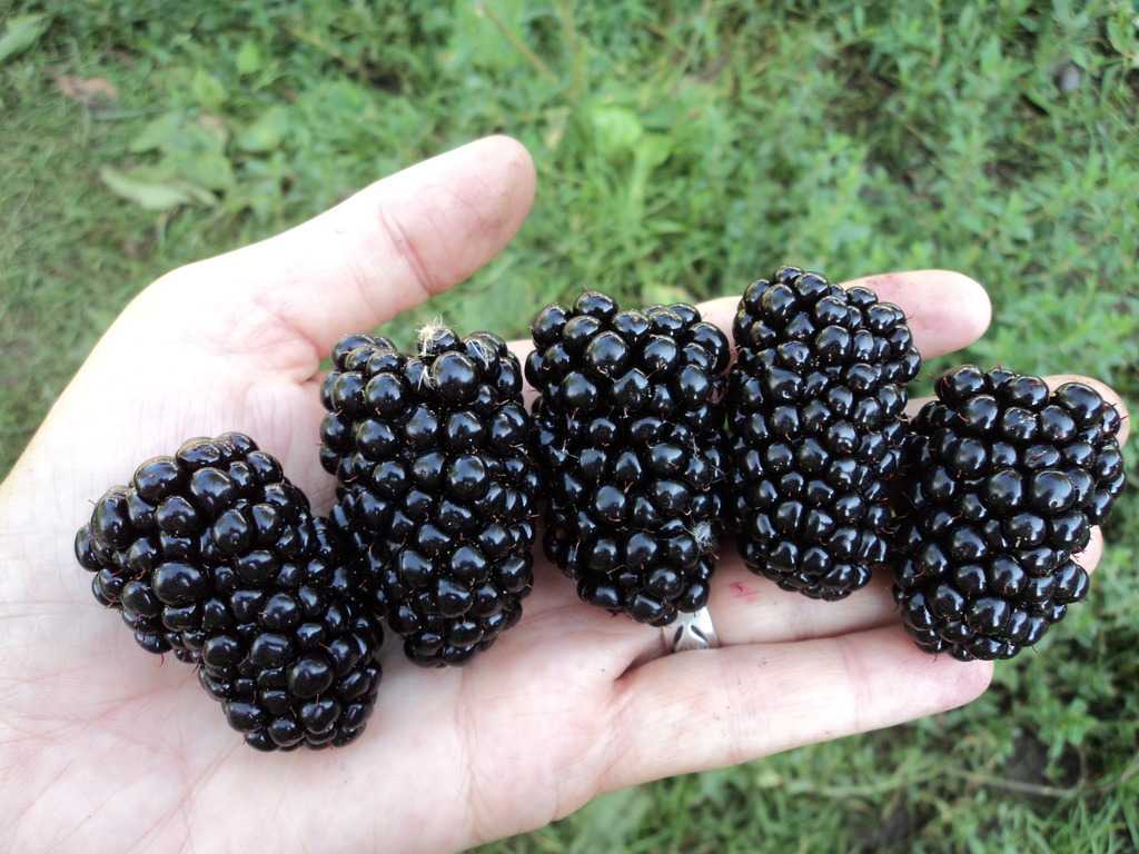 Ягода крупная, среди малиноежевичных гибридов наиболее урожайный, кол-во ягод в ягодной кисти может доходить до 15шт.