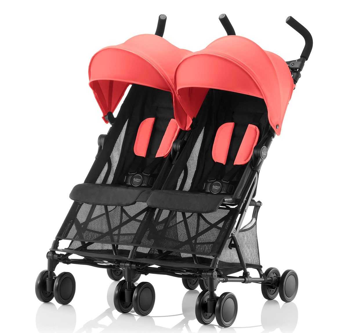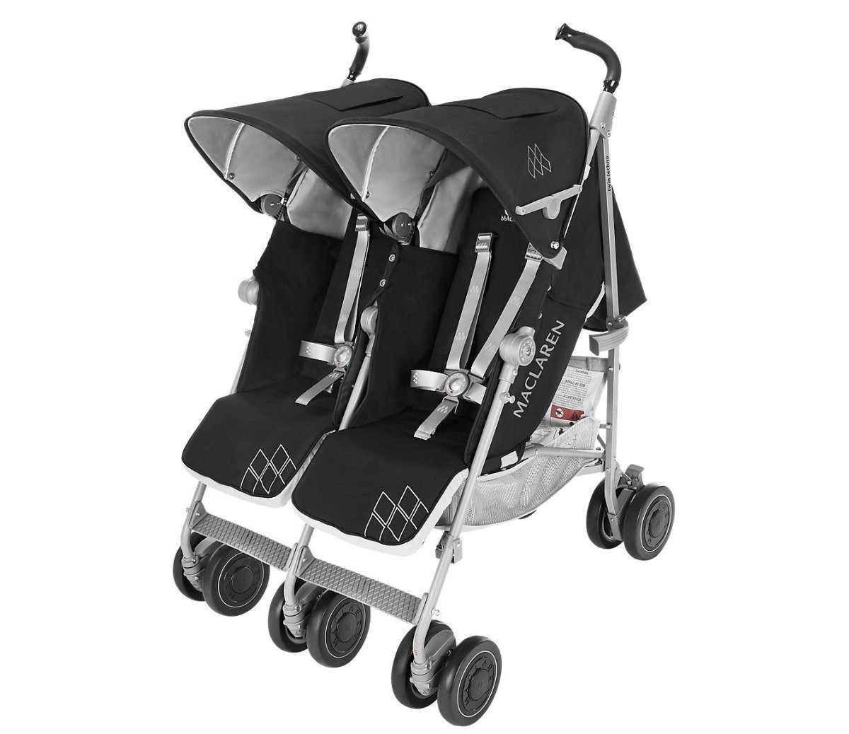 Удобная и надежная прогулочная коляска для двойни. Конструкция легкая, весит чуть больше 12 кг. Изделие можно использовать с первых дней жизни двойняшек до 3 лет. Совокупная грузоподъемность изделия составляет 30 кг. Коляска оснащена ремнями безопасности, удобным защитным капюшоном и раскладными спинками (4 положения). Ручки с нескользящим покрытием делают управление более удобным. Колеса сдвоенные, резиновые (задние — с тормозом). Ширина по колесам составляет 750 мм. Конструкция без проблем проходит в 800-миллиметровый дверной проем.