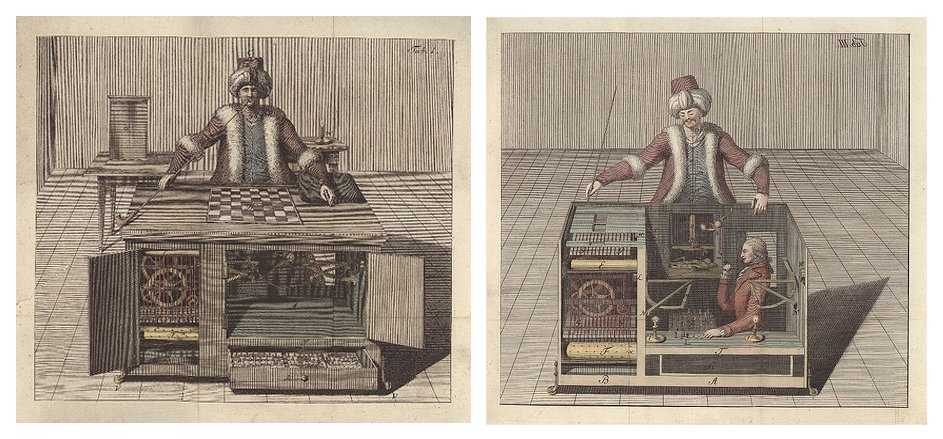 Конечно, под видом автоматонов иногда демонстрировались игрушки, управлявшиеся сидевшими внутри людьми. Самый знаменитый из таких фейков – шахматный автомат «Турок», которого в 1769 году в Вене представил его создатель барон Вольфганг фон Кемпелен (1734-1804).