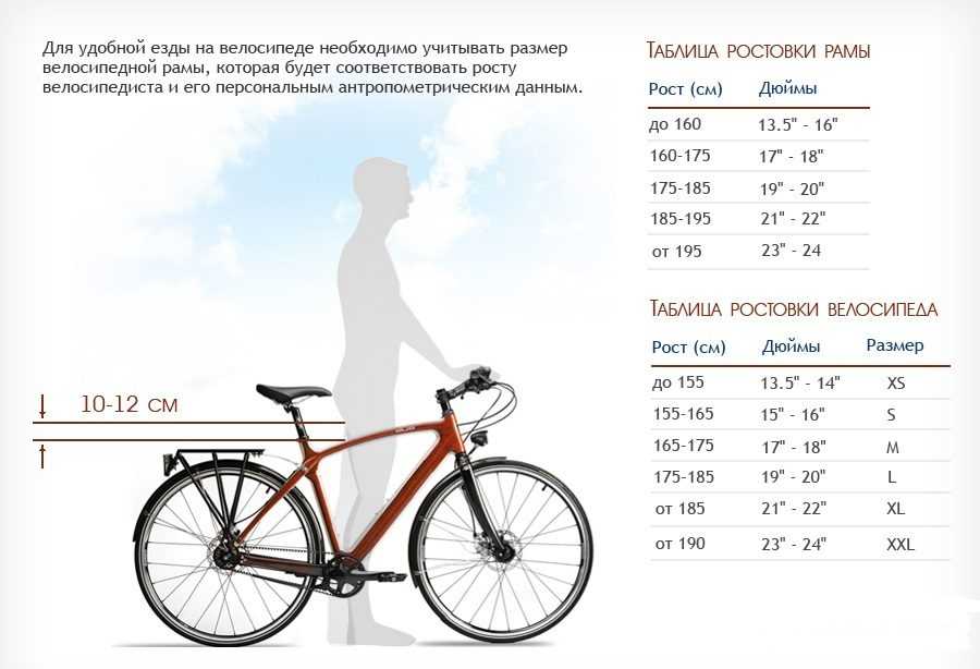 Главный критерий при выборе велосипеда, как мы уже поняли, это высота его рамы. Нужно стать так, чтобы она оказалась между ногами. Верхняя труба должна находиться на расстоянии 5–10 сантиметров от промежности. Если выбирается размер велосипеда по росту среди горных аппаратов, это расстояние может быть больше, потому что их геометрия подразумевает агрессивную езду, а в таких условиях должен быть запас.