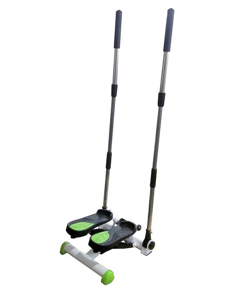 Министеппер с поворачивающимися ручками-палками, имеет большую тренировочную пользу. К классической нагрузке мышц ног и ягодиц добавляются движения всем телом, затрагивающие мускулатуру позвоночника и живота. Устройство агрегата очень простое и надежное, функционирует на механической основе, поэтому полностью энергонезависим. Небольшие размеры и масса до 8 кг, сборно-разборная конструкция, делают снаряд мобильным и удобным в хранении и использовании. Возможность определить частоту шага и примерное сжигание калорий помогут ориентироваться в нагрузках. Не рекомендуется пользователям в весовой категории свыше 100 кг или около этого. При установке требуется ознакомиться с инструкцией, поскольку могут понадобиться настройки и смазка. Правильная регулировка позволит продлить срок эксплуатации прибора. Среди недостатков отмечают слишком тонкие палки.