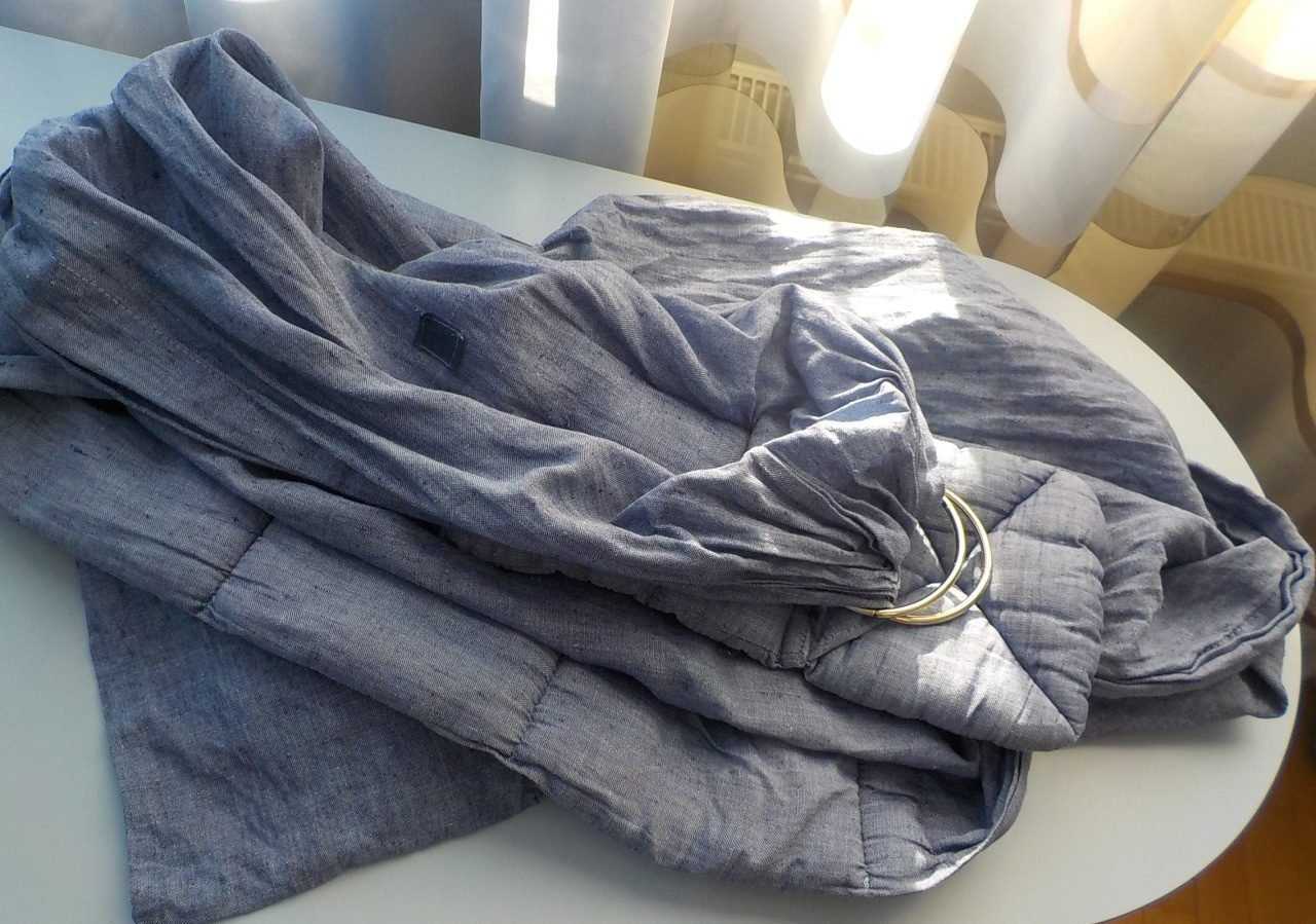 Такая переноска выглядит как длинная тканевая полоска (до 2 м в длину, а в ширину до 70 см), к одному концу которой прикреплены металлические кольца. Через них продевается второй конец ткани, и с их помощью вы можете фиксировать и регулировать слинг. В итоге получается некая колыбелька, где и находится ваш малыш. Плюсы этого вида следующие: