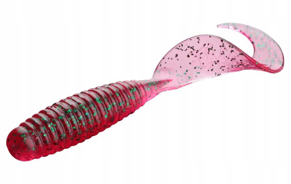 Первый тип представляет собой приманку с ребристым телом в форме червя и большим широким спиральным хвостом. При движении хвостовая часть твистера под воздействием водного потока то выпрямляется, то скручивается, вибрируя и колеблясь. Такое поведение приманки отлично привлекает хищника.