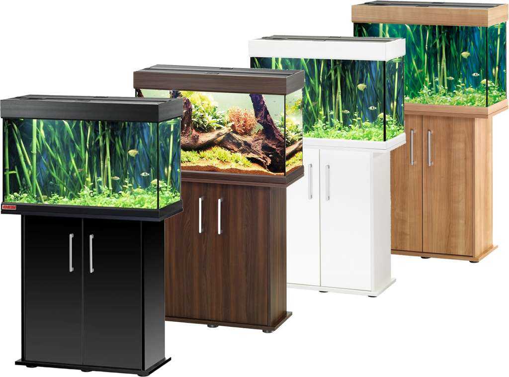 В комплекте с баком идут встроенный био-фильтр, водяная помпа и 3 лампы (две по 15 Вт и одна на 20 Вт). Аквариум можно приобрести вместе с тумбой-подставкой соответствующего цвета.