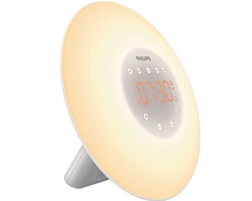 Это будильник, который имитирует восход солнца. Подготовка к пробуждению начинается за 30 минут – яркость постепенно увеличивается. А звуковой сигнал в указанное время завершает процесс. Наращивание интенсивности светового потока обеспечивает легкое пробуждение. Появляются условия, похожие на естественные – когда люди просыпаются от утренних лучей света.