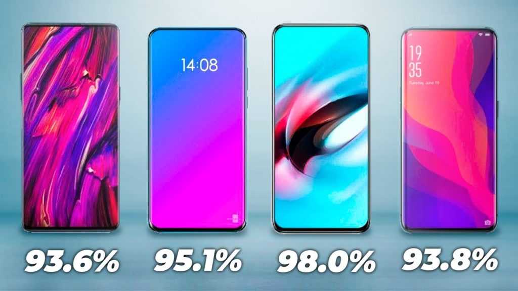 - 73%+ — в первом поколении смартфонов без обода было соотношение сторон 18:9, однако сейчас они уже уступают более новым моделям.