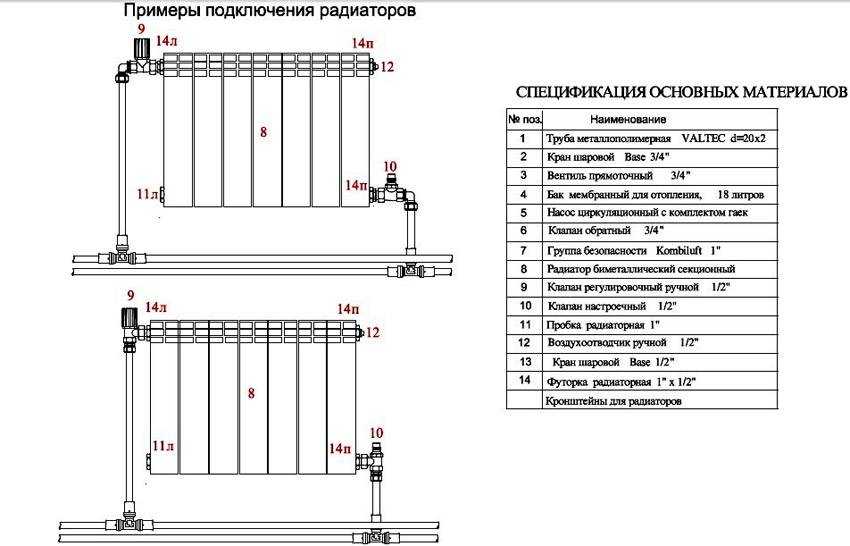 По способу подключения различается перекрёстное соединение (по диагонали), а также боковая и нижняя схема. Выбор варианта подключения зависит от размеров отапливаемой площади, а также уровня потребление тепловой энергии. Самым малоэффективным является одноточечное подключение, а наиболее перспективным – диагональный способ.