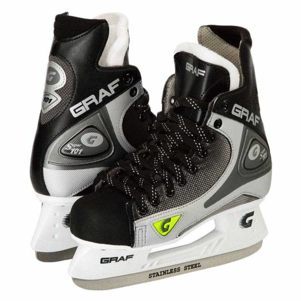 | Graf Ultra G-75 Ultralite 5000 | Легкие прочные ботинки из искусственного материала. Предназначены для игр на улице и в помещении. | Швейцария | Мужские | • Материалы полужесткие. • Подошвы пластиковые. • Есть поддержка для пятки. • Усиленный носок. • В области щиколотки вкладки для мягкости. • Лезвие сменное. • Зажим зашнурованный. | Поверхность подвержена трещинам от ударов. |