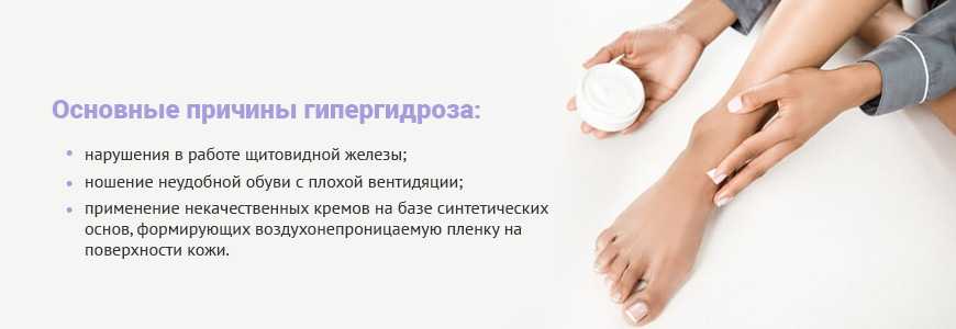 Гипергидроз – повышенное потоотделение, которое приводит к формированию патологий кожи. В зоне стопы создается участок с постоянной повышенной влажностью и температурой, комфортной для размножения бактерий. Это становится причиной появления неприятного запаха, отслаивания кожи на больших участках.
