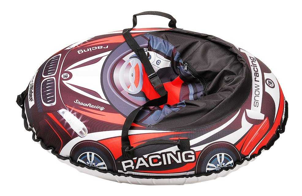 Сноутюб с дизайном на автомобильную тему способен перенести до 180 кг веса человека. При этом само изделие обладает сравнительно легкой массой в 1,9 кг. Эта гоночная версия имеет серьезную комплектацию: