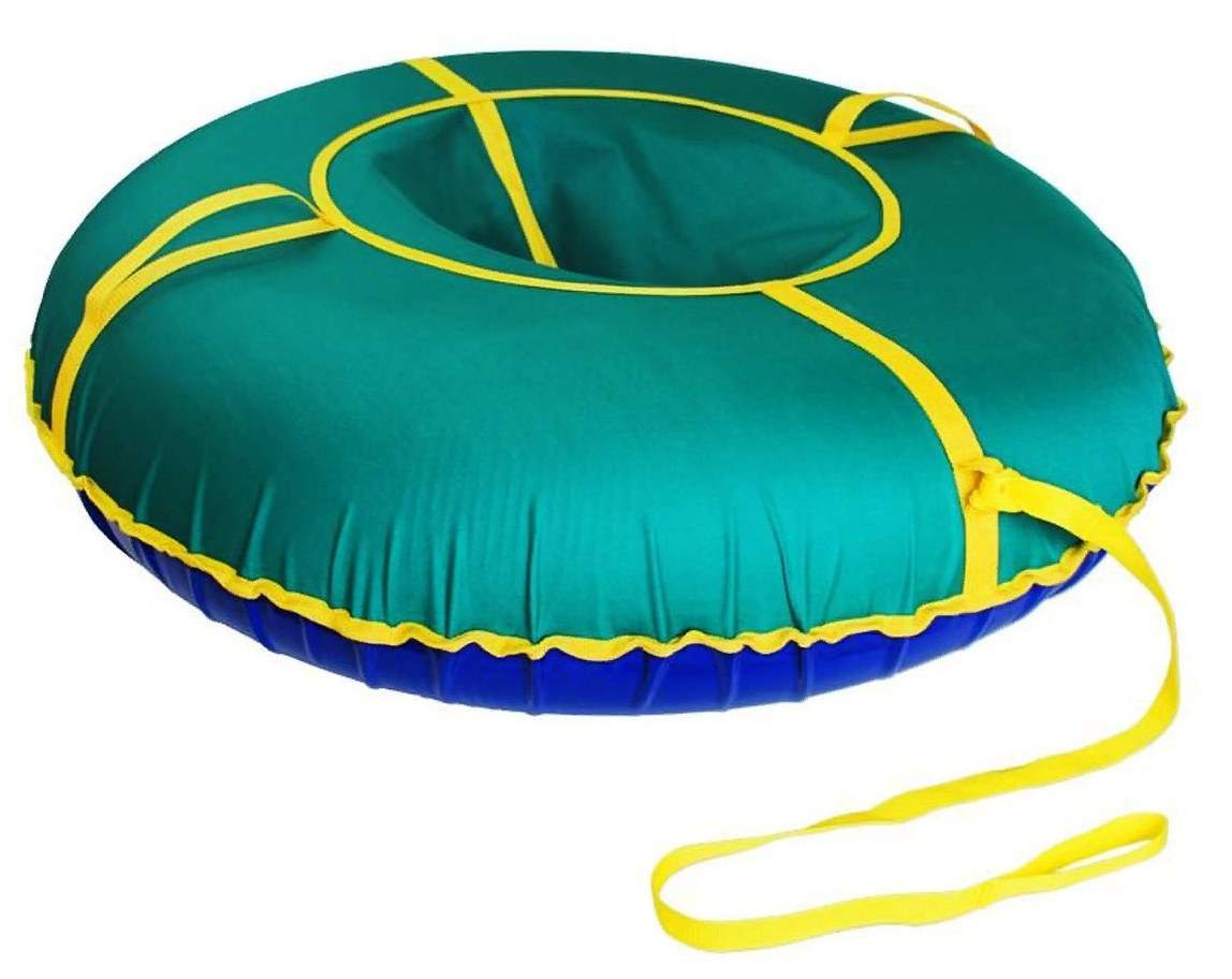 Ватрушка из среднего ценового сегмента с ценником от 1500 руб. выделяется крайне стильным нейтральным дизайном и богатым разнообразием цветовых вариантов. Для дна использовано ПВХ плотностью 650 гр/м2, обладающее повышенной степенью скольжения по поверхности даже не раскатанной горки. Верх аксессуара изготовлен из ПВХ с армировкой, которая дополнительно укрепляет материал.