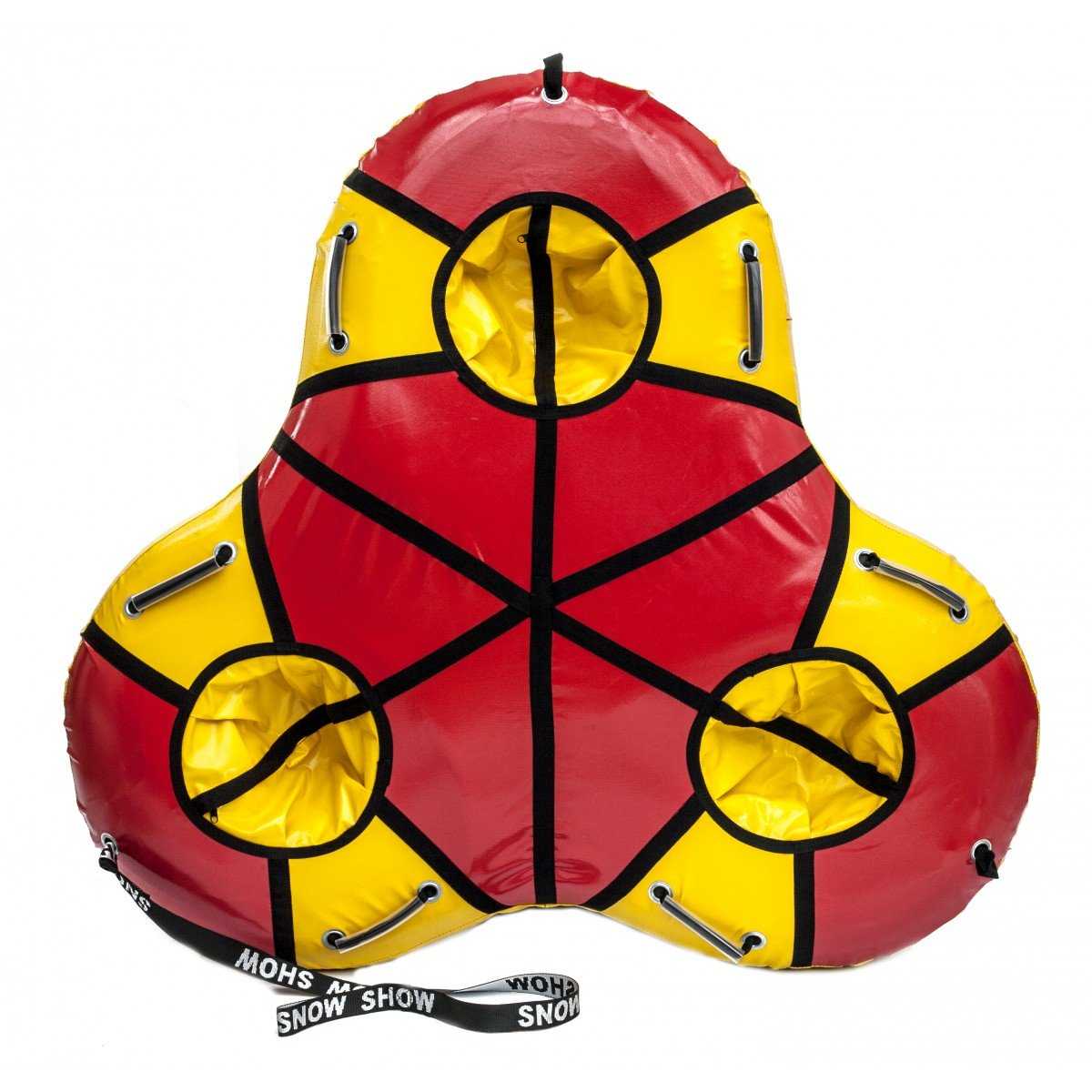 Стильное и прочное изделие оптимально подходит для веселого катания по снежным горкам. Внушительные размеры и поперечник на полноценные 110 см делают модификацию оптимальной для использования взрослыми массой до 130 кг. Вес самого изделия из комбинации ткани и крепкого ПВХ равен 3 кг. Центральная часть верха плюшки не имеет дополнительных застежек и состоит из двух частей. Швы, скрепляющие конструкцию, дополнительно защищены лентой из прочного капрона. Из такой же материи выполнены и две ручки бублика.