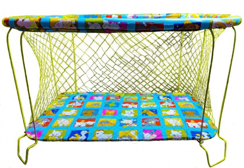 Это манеж-сетка, в котором малыш может играть. По форме они могут быть самые разнообразные. Чаще всего на металлический каркас натягивается стенка из сетки, а бортики изготавливаются из мягкой обивки (клеенка, плащевка или натуральная ткань).