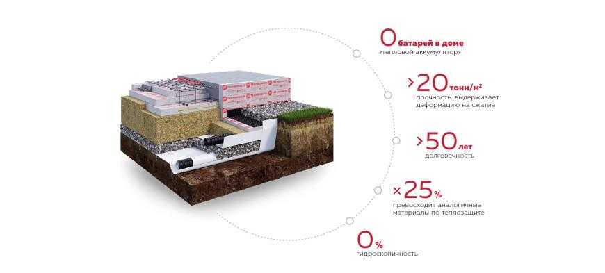 С конструктивной точки зрения фундамент УШП имеет весомые достоинства. Сплошное утепление плиты исключает промерзание и пучение грунта под ней, а также устраняет вероятность появления мостиков холода. Поскольку такой фундамент относится к категории мелкозаглубленных, его можно сооружать на участках с высоким уровнем грунтовых вод. Несущая способность УШП достаточно велика, чтобы возвести на ней дом в несколько этажей. Чистовую отделку пола можно делать сразу по поверхности плиты – она ровная и не требует доработки. Что касается стоимости фундамента УШП, то она выше, чем у ленточного или свайного, однако по сумме всех работ и эксплуатационных расходов он оказывается более экономным. Во-первых, прокладка и разводка коммуникаций уже включены в стоимость. Во-вторых, фундамент УШП не требует масштабных земляных работ – котлован под него очень неглубокий и может быть выкопан своими силами. В-третьих, перекрытие по свайному или ленточному фундаменту монтируется отдельно, в то время как УШП – это уже готовый пол первого этажа, который к тому же не нуждается в утеплении. И наконец, по теплосберегающим свойствам УШП однозначно выигрывает у других разновидностей фундаментов для загородного жилья, и за счет этого он продолжает экономить деньги владельца в течение всего срока службы.