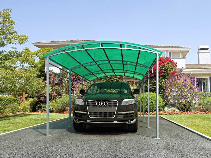 Чаще всего арочные навесы из поликарбоната своими руками сооружают именно с использованием данного типа материала.