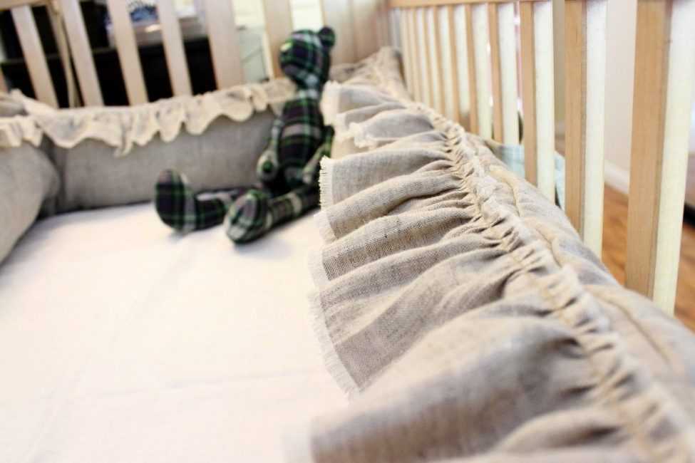 Модные наборы из льна тоже красивые, прочные, мягкие, впитывают влагу и антисептичны. Но они быстро мнутся и тяжело гладятся, поэтому в них добавляют нити из синтетики, чье присутствие для ребенка нежелательно.