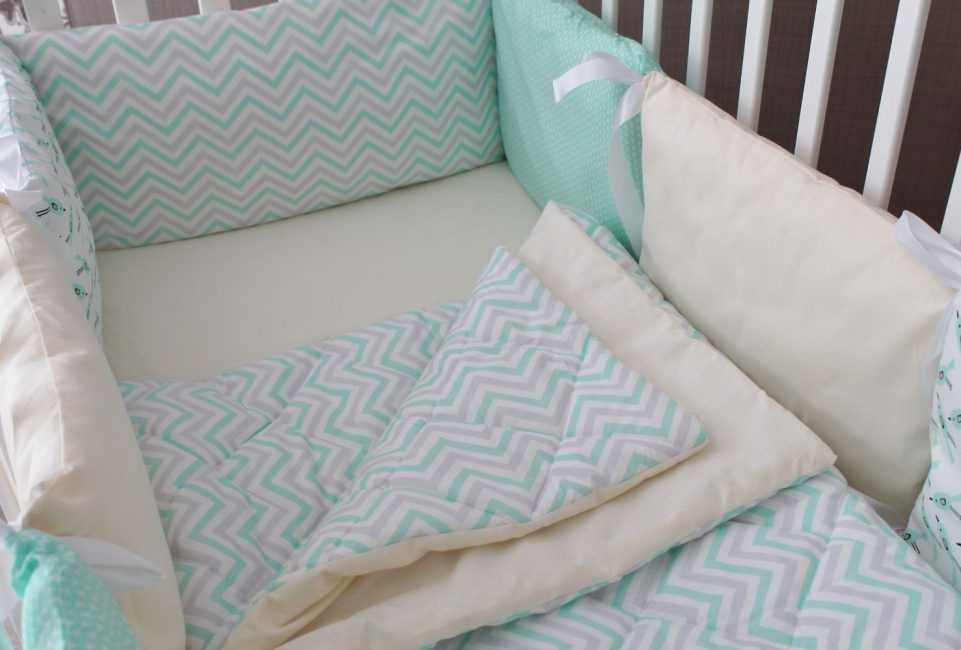 Профессиональные швеи рекомендуют выбирать материал для нескольких комплектов, цветовая гамма которых имела бы общие тона, а изделия гармонично сочетались бы между собой. Такая хитрость поможет молодым родителям не менять белье полностью, а убирать только испачканные элементы, и менять их на части другого комплекта.