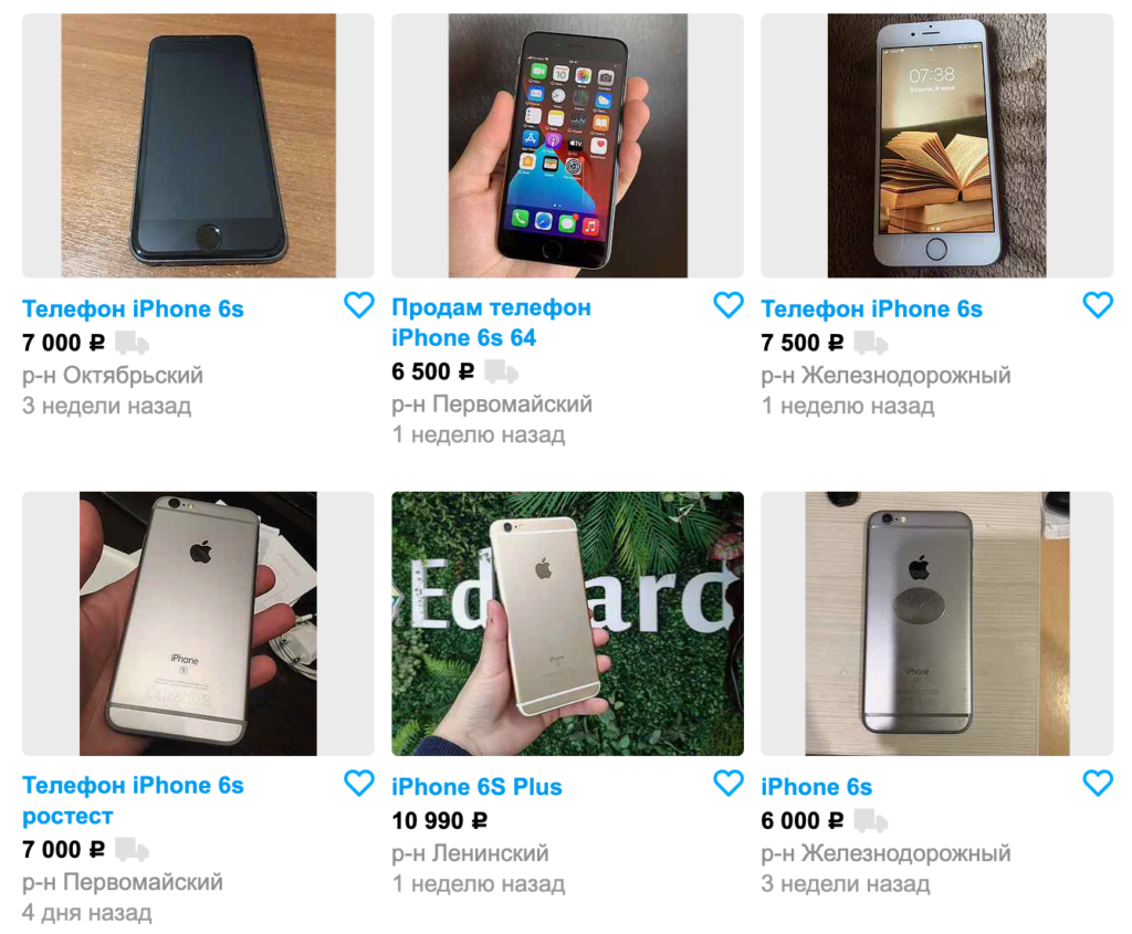 К сожалению, 6s практически невозможно купить в магазинах, но девайсы в избытке присутствуют на «Авито», «Юле» и прочих торговых площадках. В зависимости от памяти, комплекта и состояния, смартфон можно приобрести за 5-15 тысяч рублей.