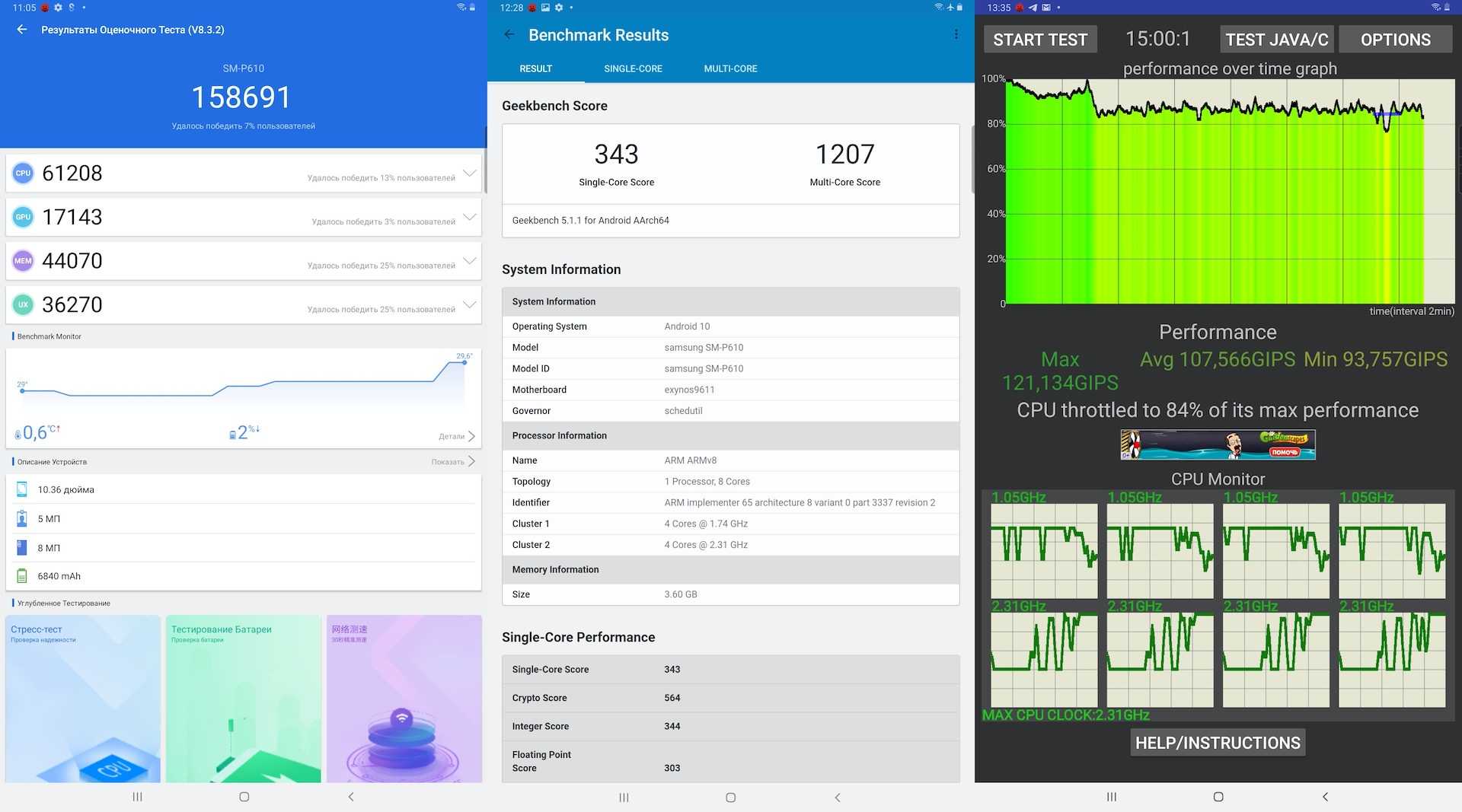 Характеристики и результаты тестирования Samsung Galaxy TabPRO S (SM-W700NZKA)