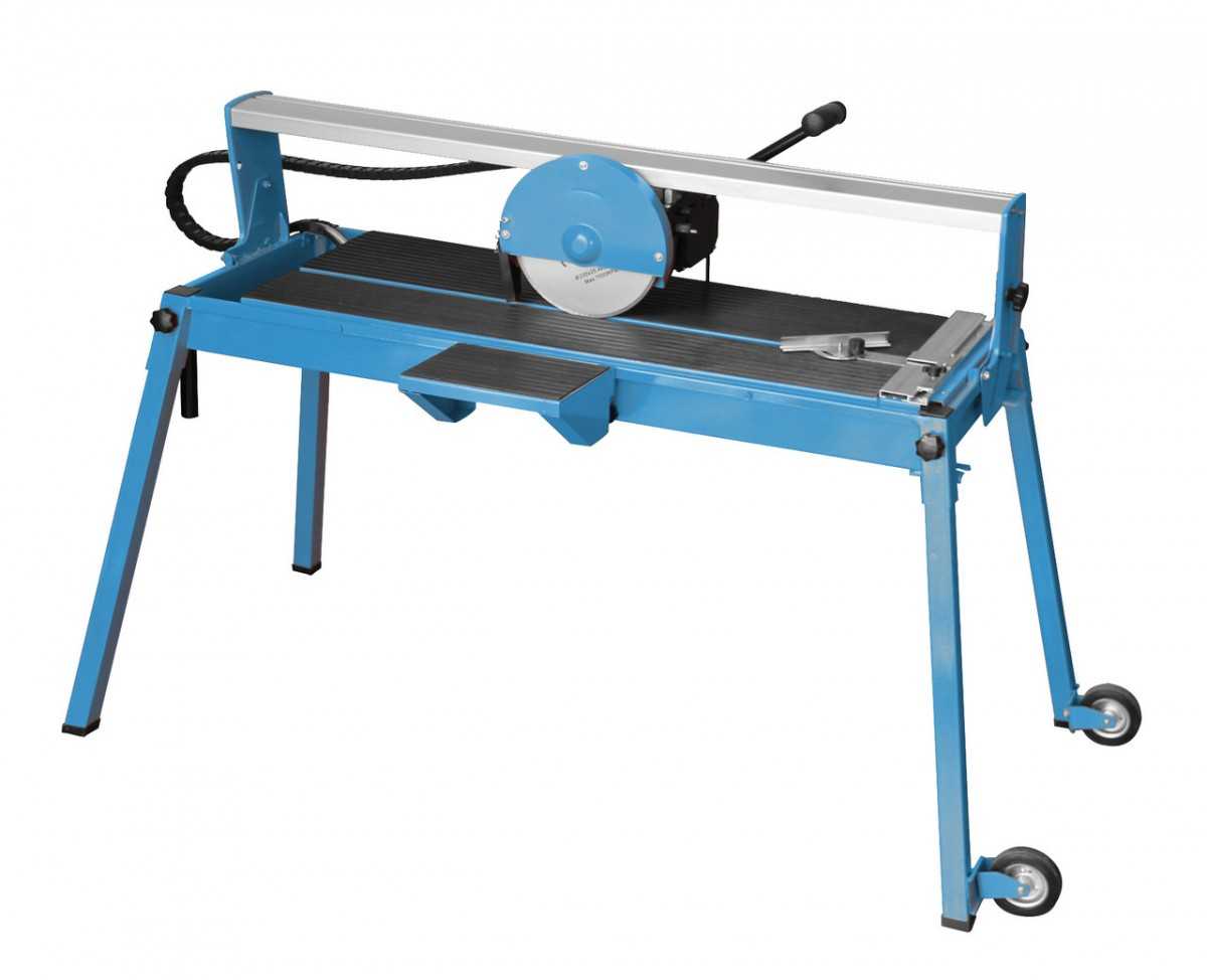 Справляется с любыми материалами: облицовочными плитами, керамогранитом, мрамором, камнем. Оснащен мощным мотором, водным охлаждением, способностью резать под углом. Максимальный размер плитки составляет 610 мм.