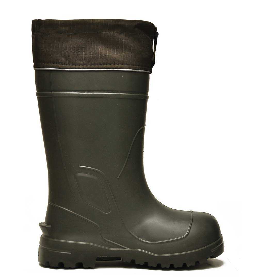 Утепленные сапоги с вкладышем помогут выдержать температуру до -60 градусов, благодаря материалу изготовления ЭВА. Высота изделия – 44 см, широкое голенище позволяет при необходимости заправлять брюки в сапоги или фиксировать по размеру с помощью затяжки.