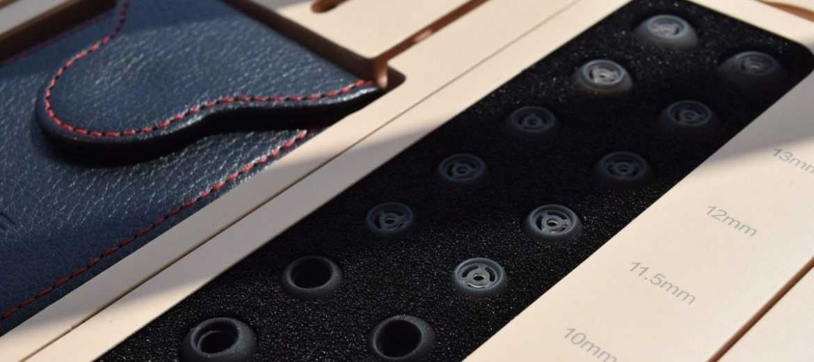 В комплекте, с этими наушниками, вы получаете девять пар ушных вкладышей и чехол, для хранения