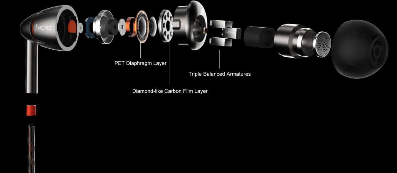 Как следует из его прозвища, 1MORE Quad Driver поддерживается четырьмя драйверами, состоящими из трех сбалансированных якорных блоков и алмазоподобного углеродного динамического драйвера. Гарнитура может работать в диапазоне частот от 20 Гц до 40 кГц и иметь импеданс 32 Ом, это означает, что вы сможете управлять ими практически с любым портативным медиаплеером или смартфоном.