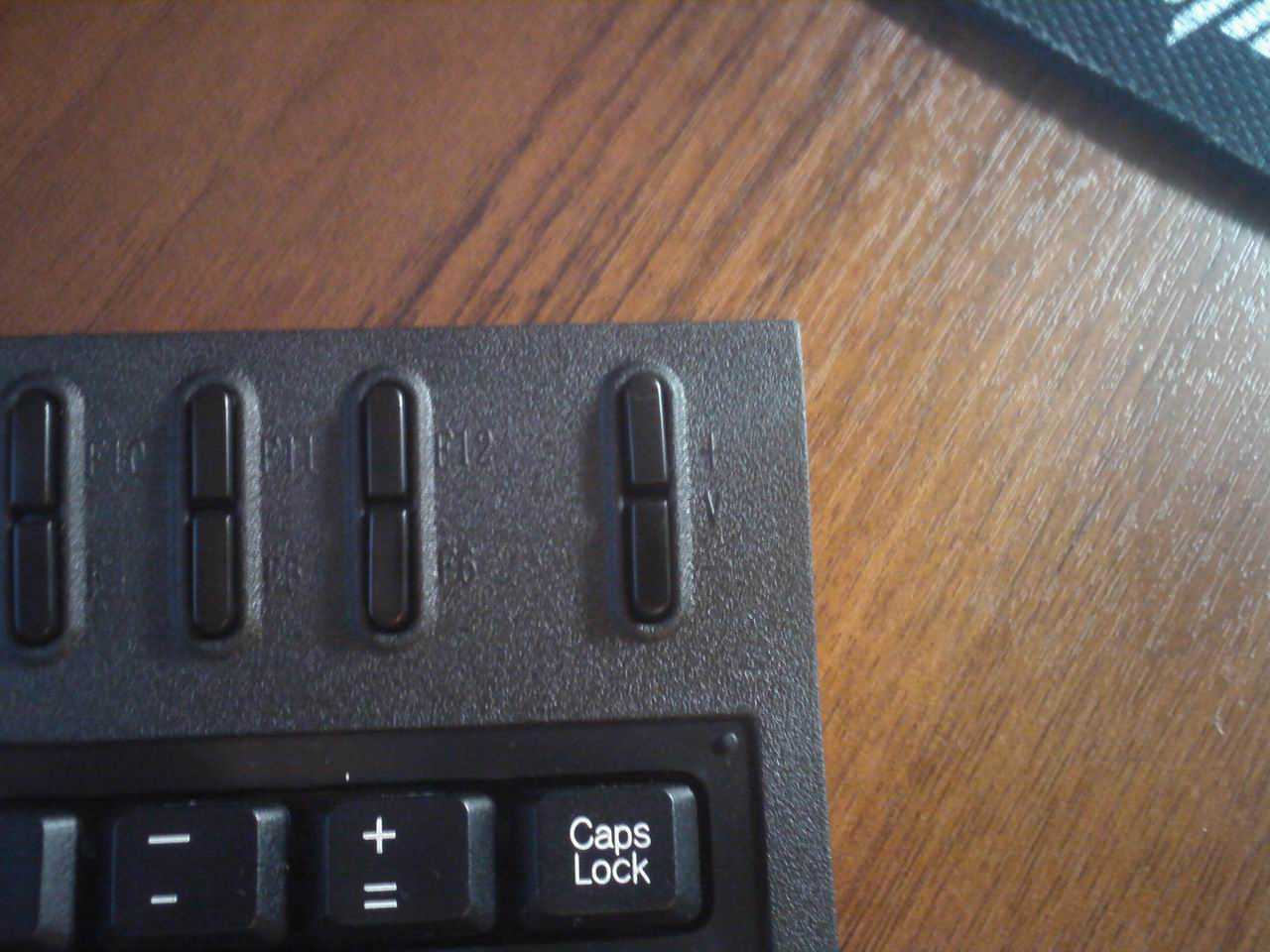В верней части клавиатуры расположен индикатор нажатия “Caps Lock”. Шесть пар кнопок, нижний ряд F1 – F6, верхний ряд F7 – F12.