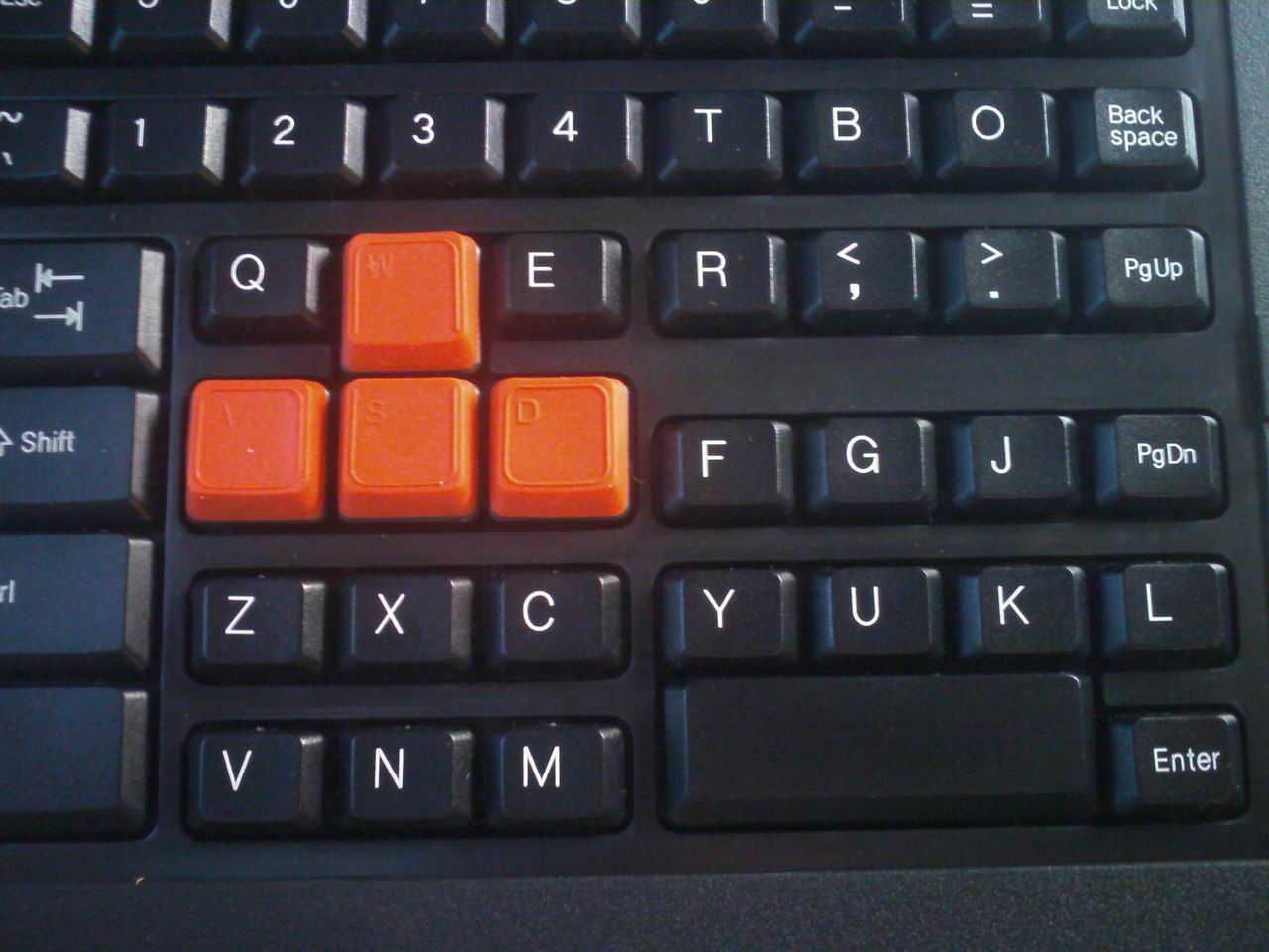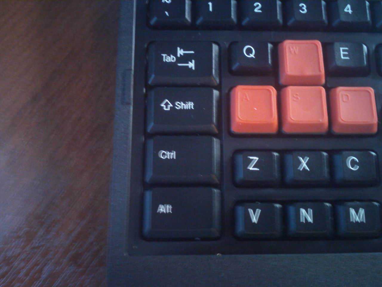 Кнопки “W”, “A”, “S” и “D” прорезинены и имеют красный цвет. “Пробел” стал уже, а совсем маленьким “Enter” расположен в нижнем правом углу.
