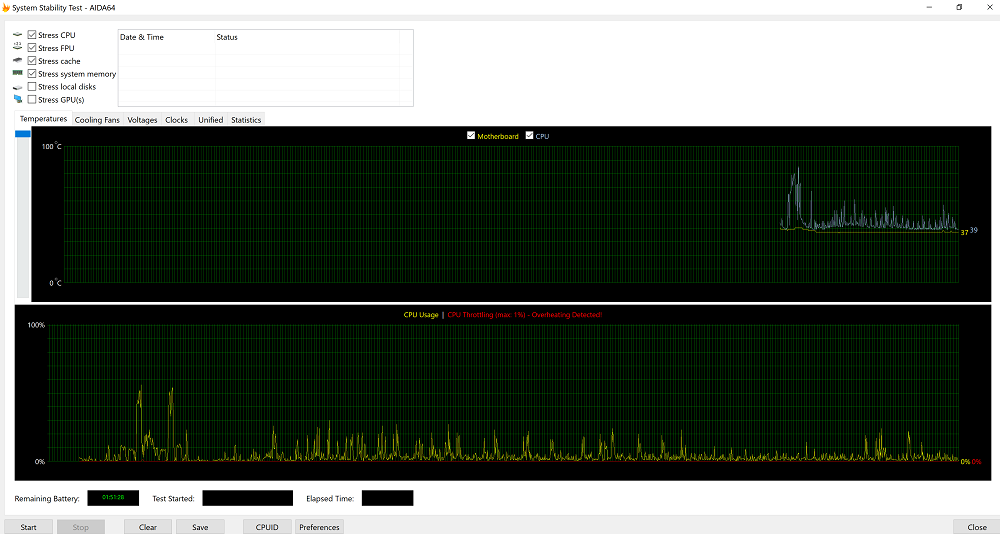 Во время симуляции офисных задач ноутбук работал очень тихо, но говорить о «бесшумности» было бы, скажем так, искажением фактов. 37 дБ могут внезапно превратиться в 41 дБ, поскольку по каким-то причинам интенсивность вращения вентилятора внезапно возросла. Во время больших нагрузок процессора генерируемый шум смог достичь 42-43 дБ, что является хорошим результатом.