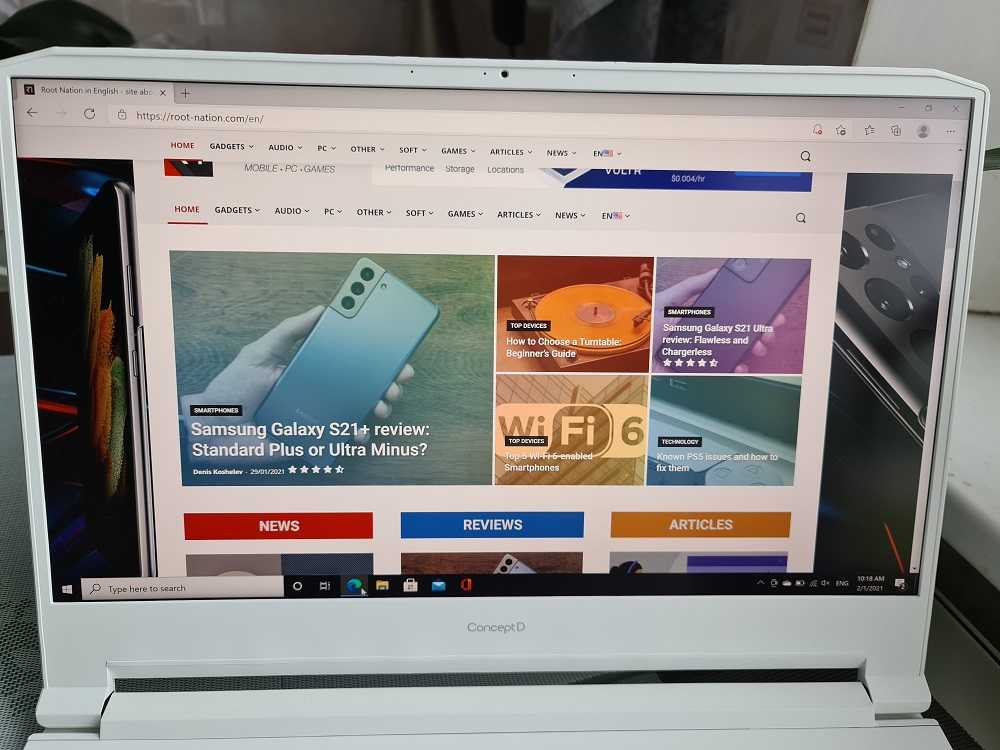 Кого-то, возможно, удивит отсутствие в Acer ConceptD 7 встроенного картридера. Для людей творческих профессий он играет довольно важную роль, потому что постоянно нужно перекидывать отснятый фотоаппаратом материал на ноутбук, и здесь картридер точно не был бы лишним. А еще мне, например, не хватало встроенного сканера отпечатков пальцев, который мы уже воспринимаем почти как должное в ноутбуках такого уровня и цены.