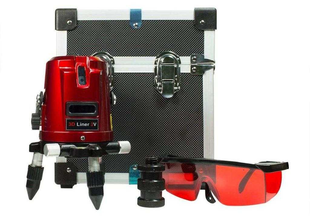 Четыре красных луча хорошо видно при любом освещении, в комплекте есть удобный качественный кейс. Максимальное время непрерывной работы – около восьми часов, за это время устройство расходует полный комплект из трех АА-батареек.