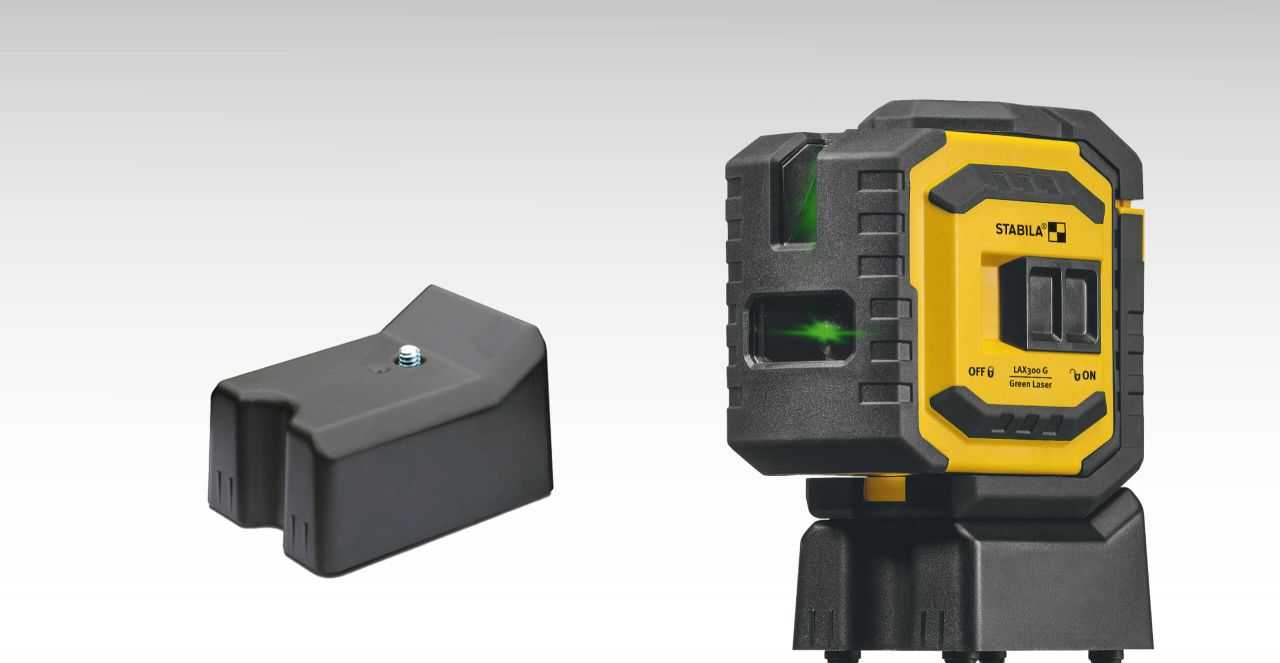 В Stabila LA-5P есть функция отвеса: при определенном повороте измерителя точка проецируется строго вниз или вверх. Эта функция необходима при, например, переносе отметок с пола на потолок (или наоборот). Уровень оснащен поворотным основанием: для изменения положения его не надо переставлять, достаточно просто развернуть.