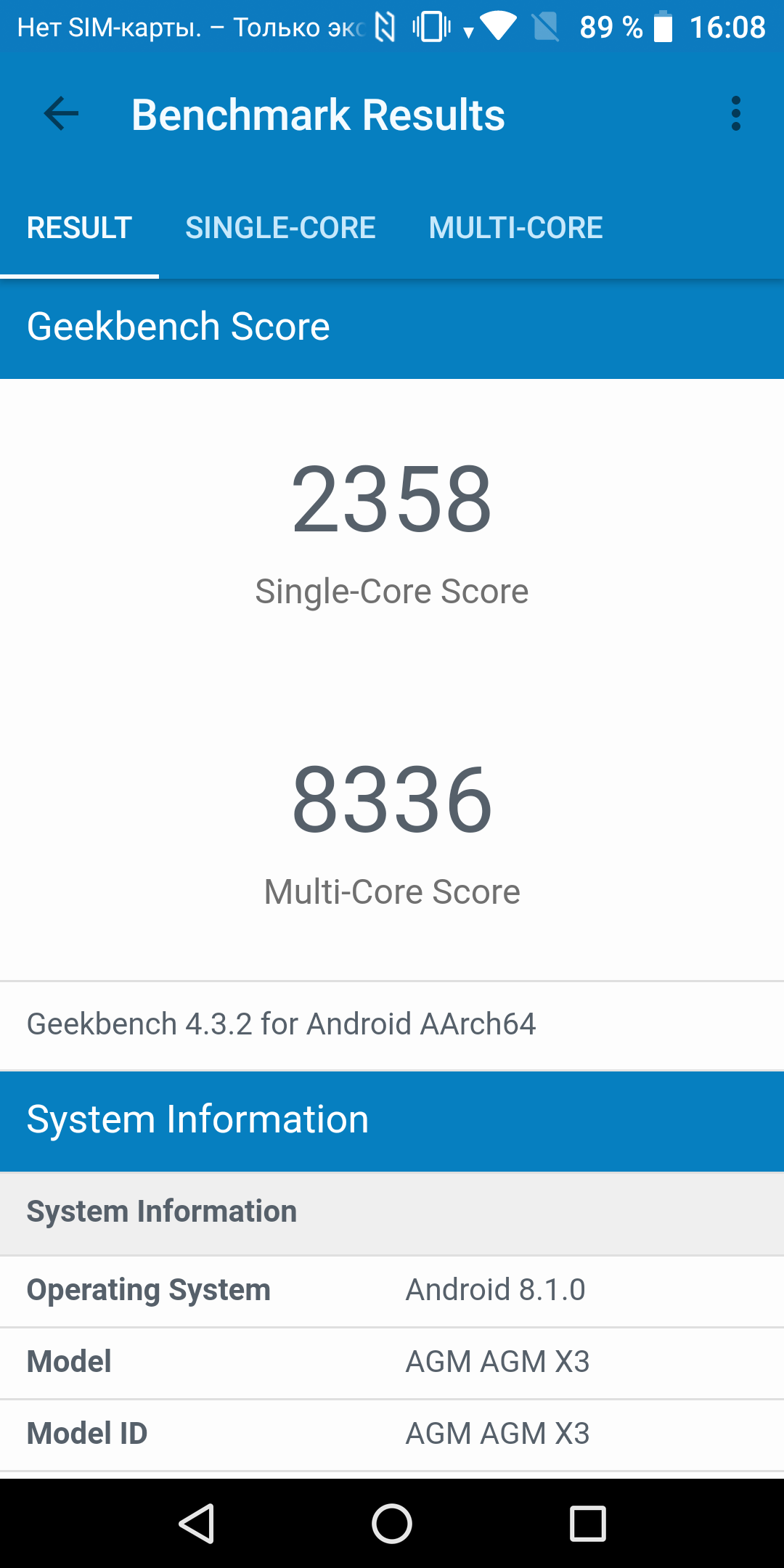 Основой AGM X2 выступает чипсет Qualcomm Snapdragon 653. У него четыре ядра ARM Cortex-A72 с частой до 1,95 ГГц и четыре ядра ARM Cortex-A53 с частотой до 1,44 ГГц, а также графика Adreno 510 с частотой до 600 МГц. Вообще этот ускоритель рассчитан в том числе и на экраны с разрешением 2560 х 1440 точек, а у AGM X2 «всего» 1920 х 1080. Так что получается неплохой запас ресурсов. Из минусов отмечу техпроцесс – 28 нм. Уже существуют 14-нм чипсеты среднего класса, которые потребляют ощутимо меньше энергии. С другой стороны, у AGM X2 экономичный AMOLED-экран, который компенсирует разницу в энергопотреблении между 14- и 28-нм платформами.