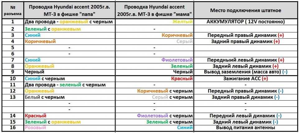 Распиновка автомагнитолы разъема