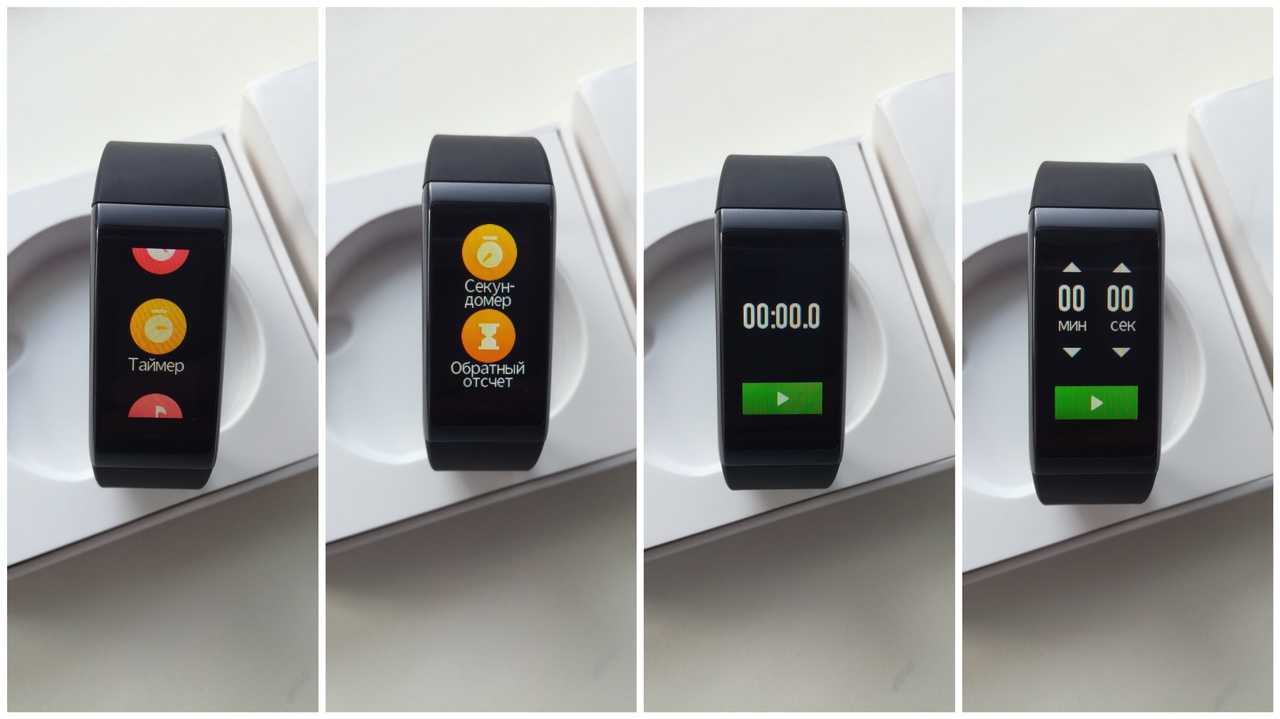 - Таймер и секундомер. Данные сохраняются в приложении, дублируются на экране браслета в реальном времени.