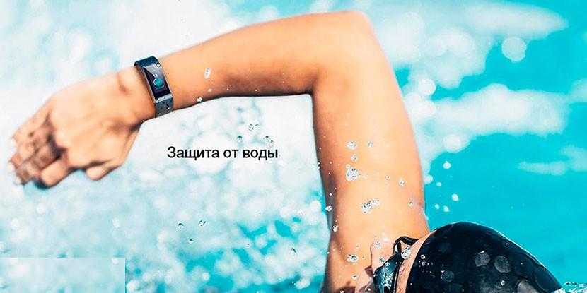 Корпус браслета полностью герметичен, не имеет стыков и прорех. Ему присвоен сертификат защиты от пыли и воды IP67. Это означает, что устройство можно погружать в воду на глубину до 1 м и держать там до получаса. С умными часами можно спокойно мыть руки, принимать душ. Производитель утверждает, что с ними безопасно даже плавать в бассейне.