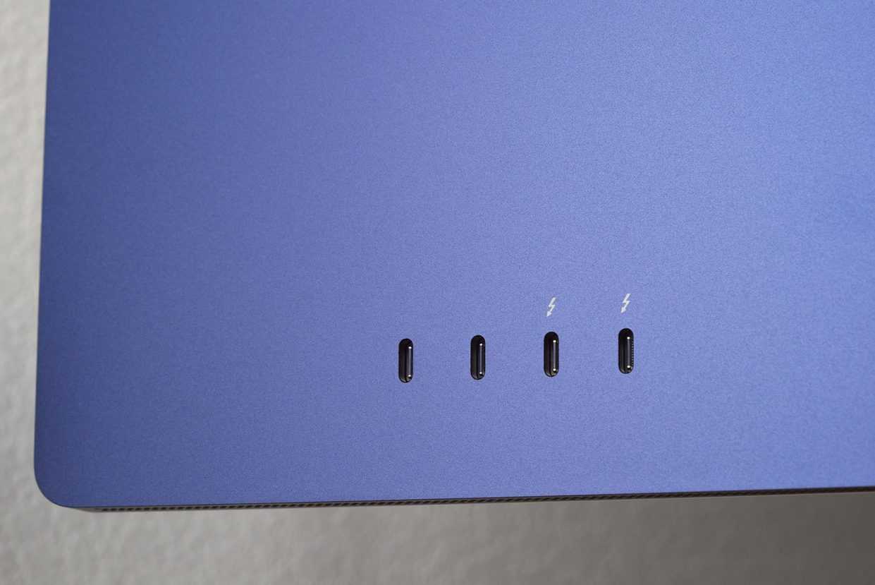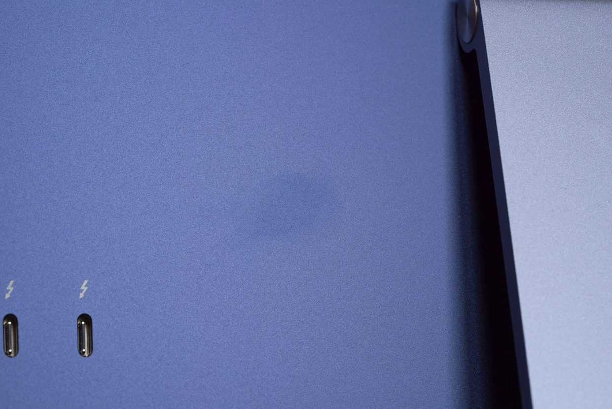 В продвинутой модели 4 порта USB-C. На цветном алюминии только так остаются следы от пальцев. Стереть просто так не получится, нужна хорошая микрофибра.