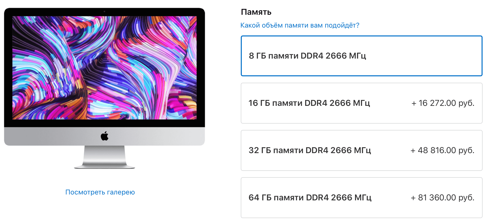 В целом, я вижу два варианта покупки нового iMac. Первый – базовая модель за 129 990 рублей. Самое то для всех, кто просто хочет домашний компьютер для работы и развлечений, без специфически требовательных задач.