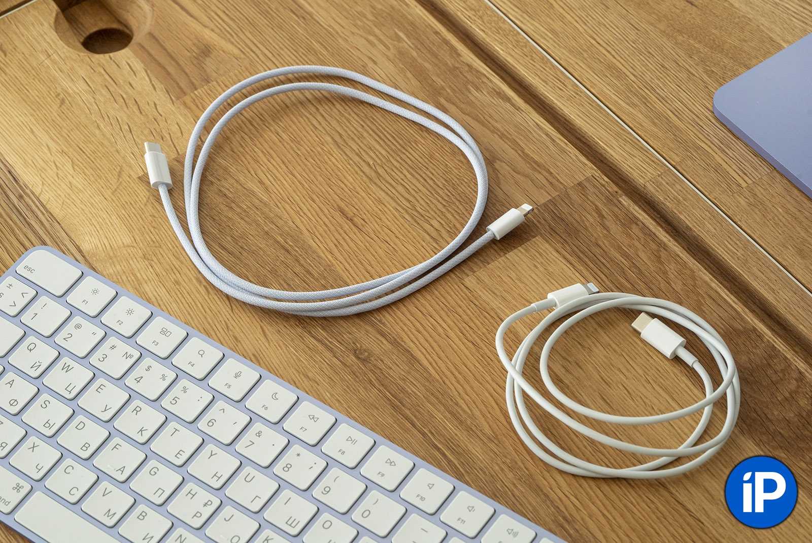 Тот самый плетёный кабель Lightning на USB-C, который пока нельзя купить отдельно.