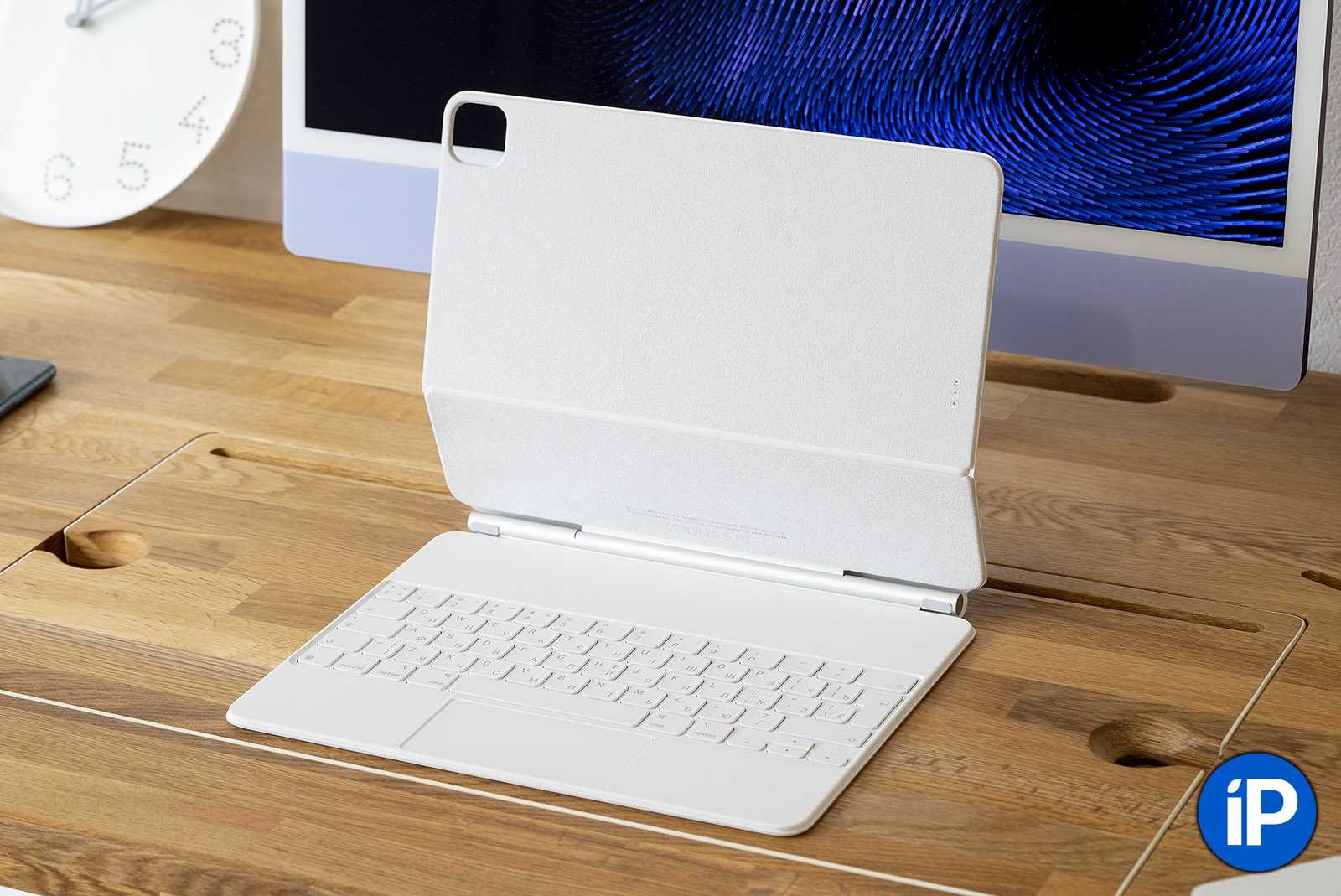 Выглядит новая белая Magic Keyboard просто великолепно, к ней одинаково подходит как серебристый, так и iPad Pro в цвете «серый космос». Как и прежде, это аксессуар высшего качества, сочетающий в себе второй порт USB-C для удобной зарядки, поворотную подставку, клавиатуру и тачпад будто прямиком с новых MacBook.