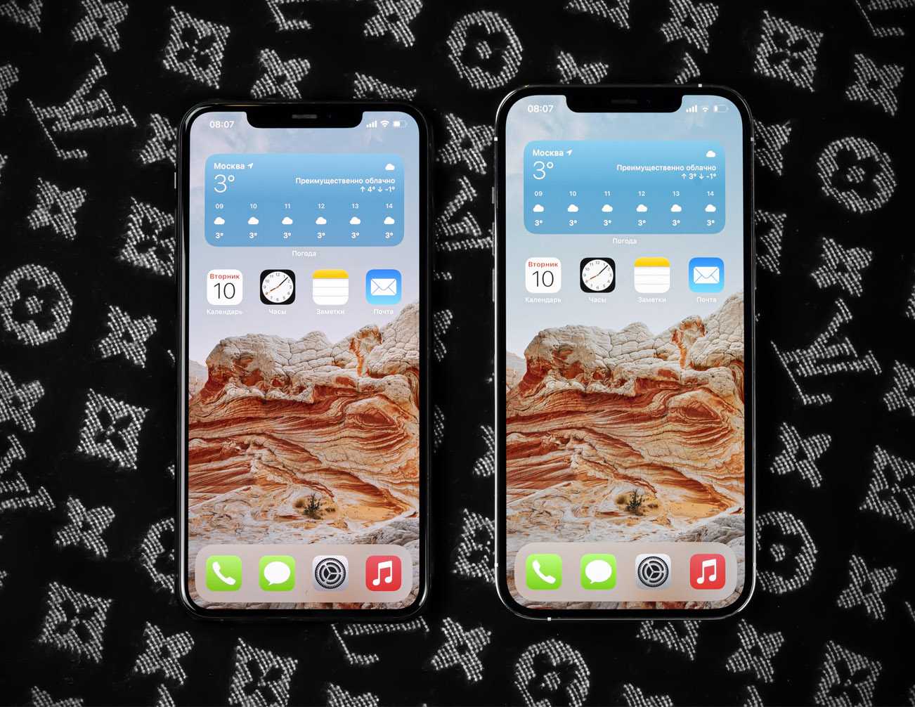 Слева iPhone 11 Pro Max (6,5 дюйма), справа iPhone 12 Pro Max (6,7 дюйма).
