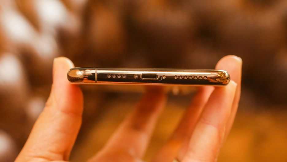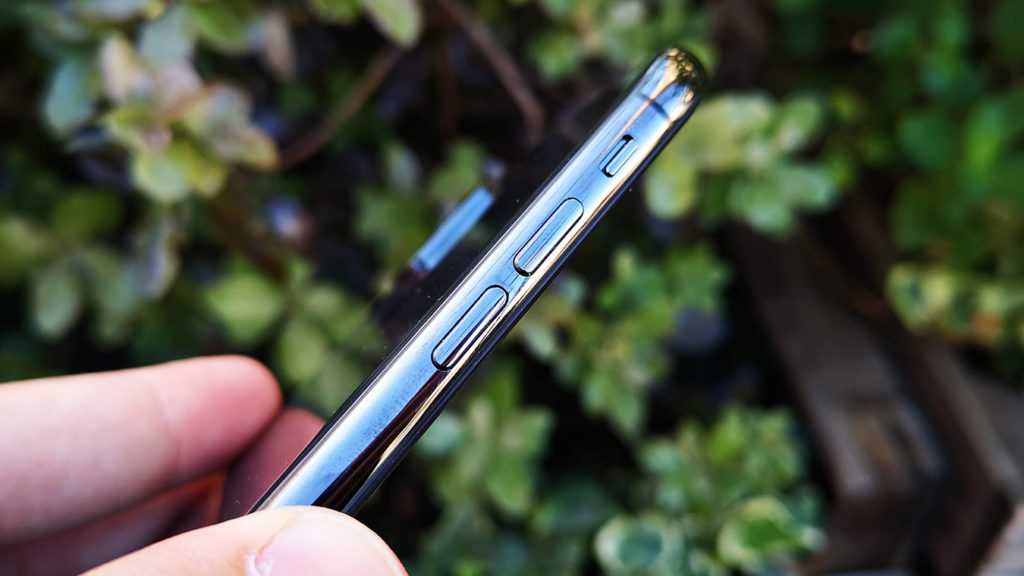 Кнопка питания/блокировки находится на правой стороне XS Max, и ее достаточно легко нажать большим или указательным пальцем, а кнопки громкости располагаются слева, под переключателем бесшумного режима.