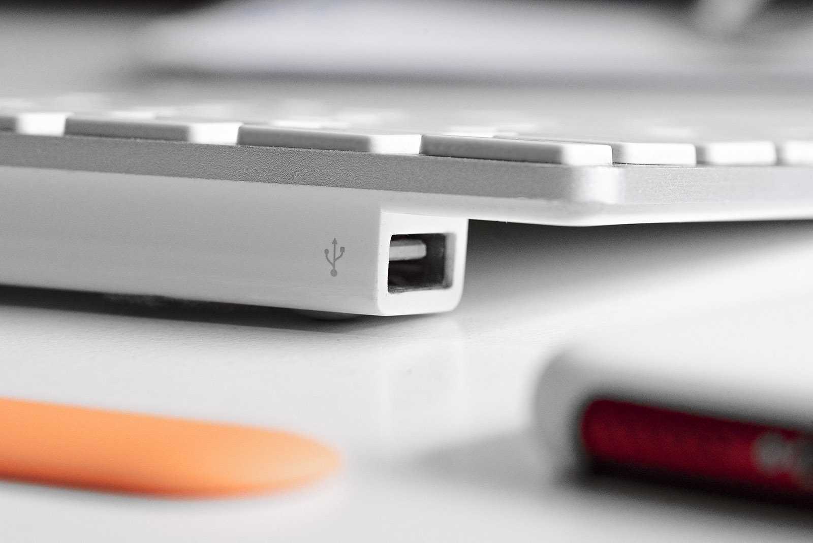 Ещё из особенностей Wired Keyboard – наличие двух USB-портов. Они стоят по бокам в дальней приподнятой части.