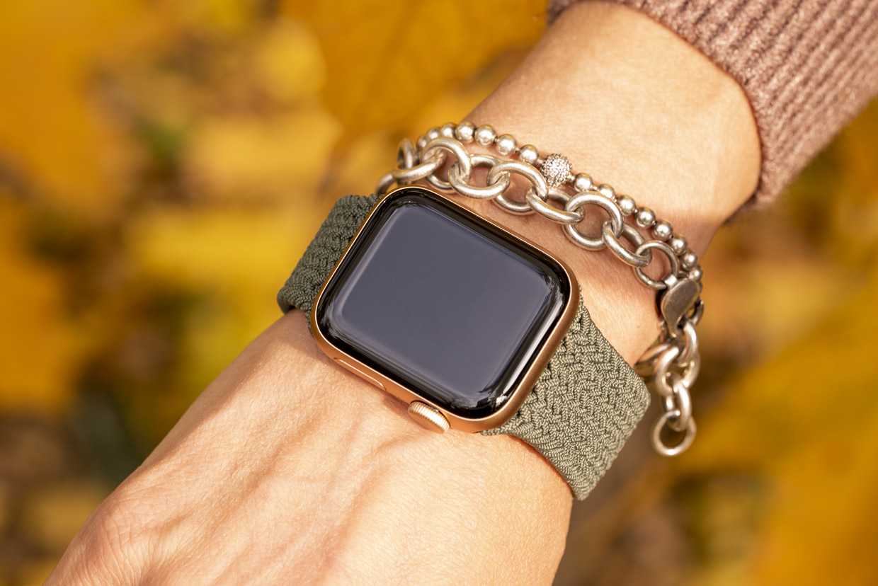 А силиконовый ремешок, идущий в комплекте, сильно проигрывает нейлоновым конкурентам в красоте и тактильных ощущениях, но это единственный ремешок из нашего набора, подходящий для водных тренировок. Apple Watch водонепроницаемы, а большинство ремешков — нет.